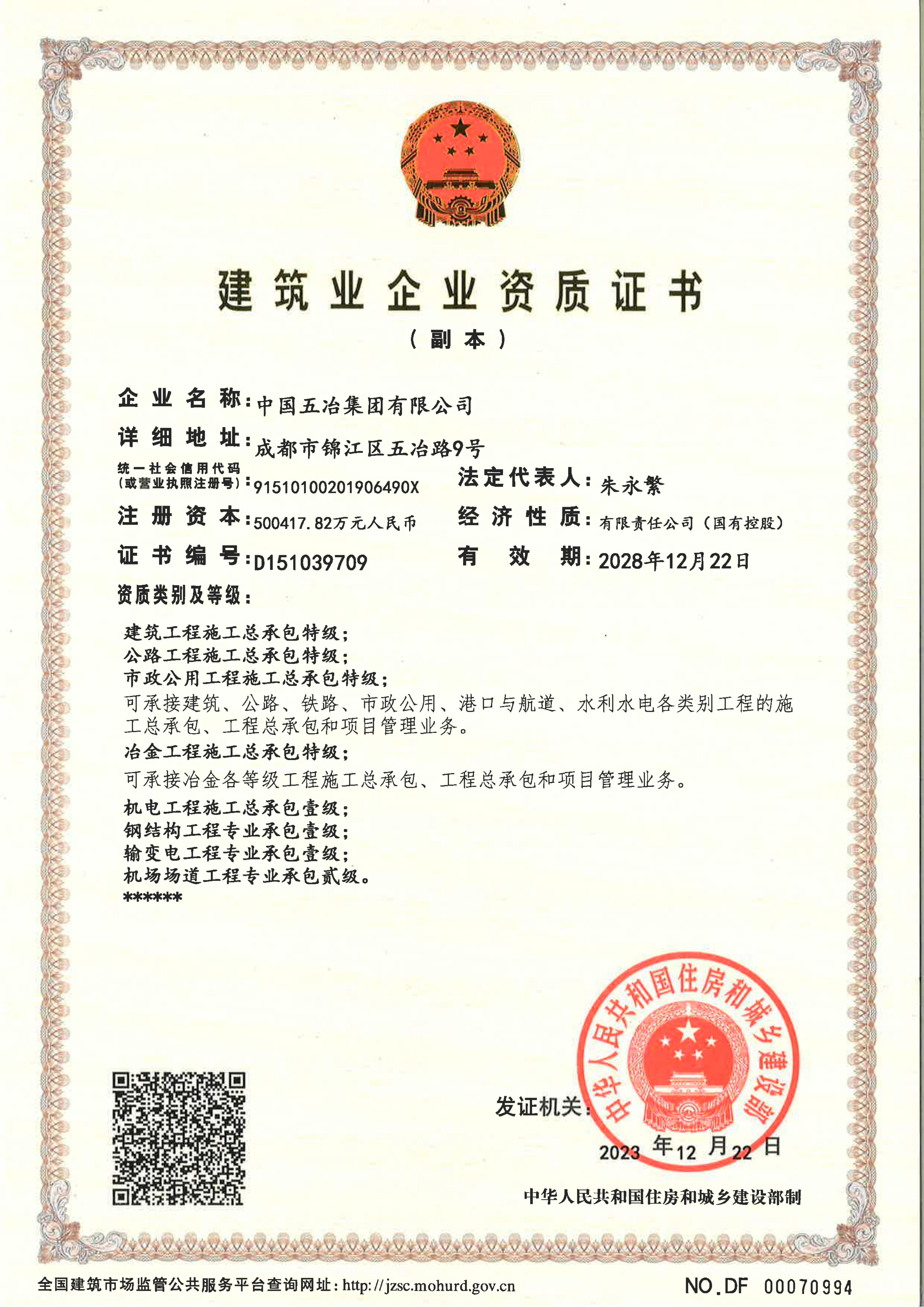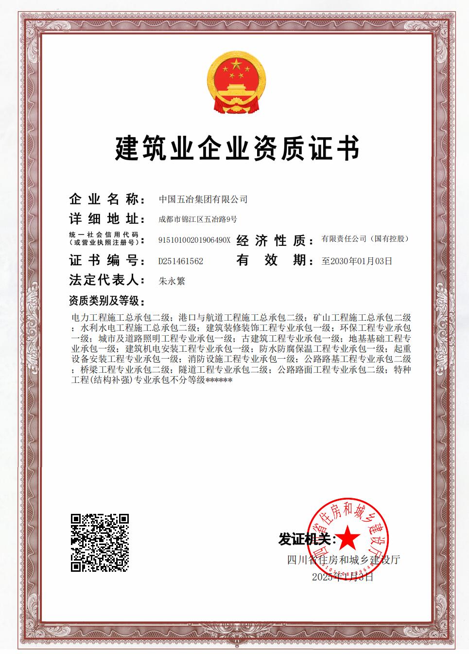 Construction Enterprise Qualification Certificate (Construction, Municipal, Highway, Metallurgical)