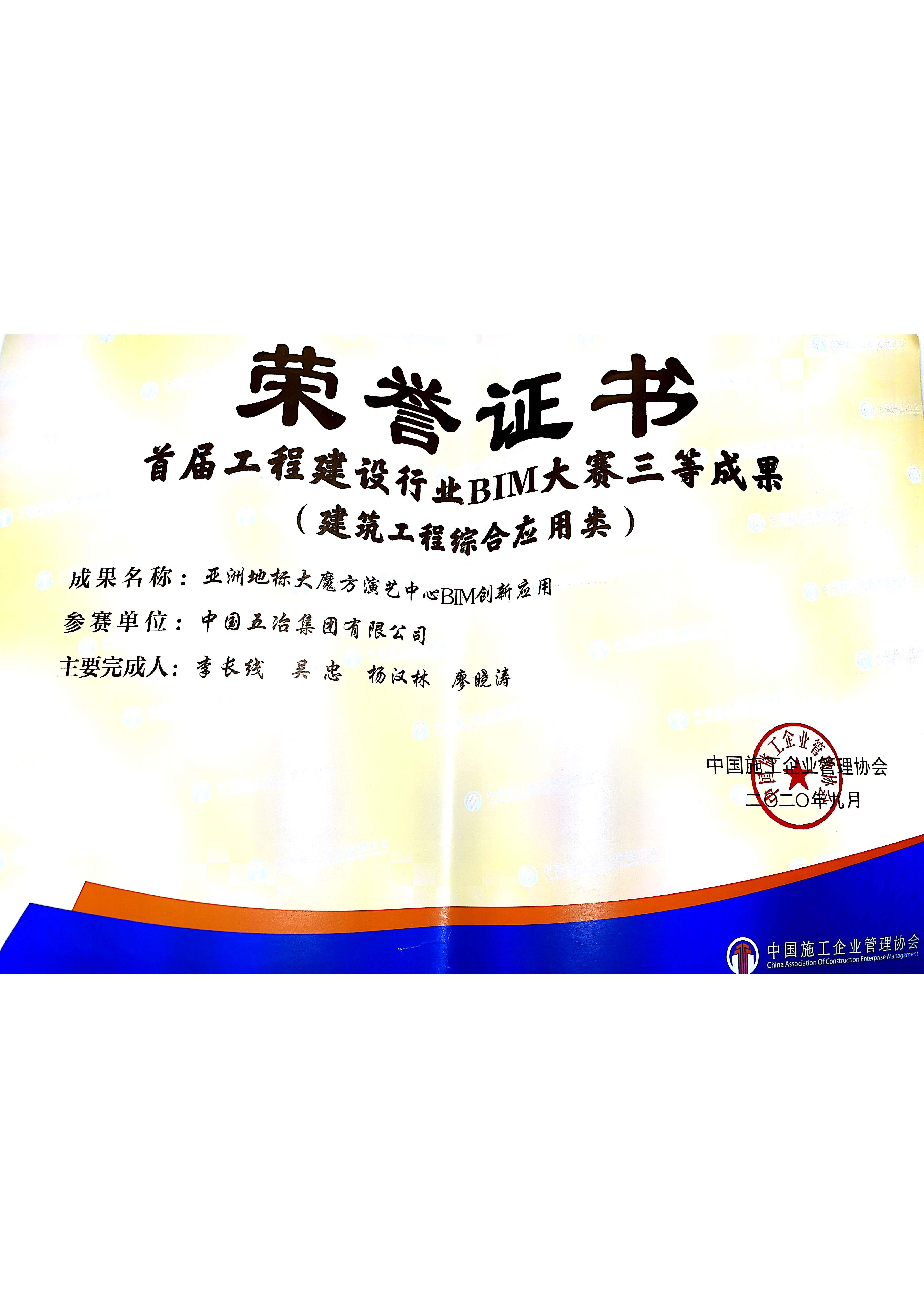 亞洲地標大魔方演藝中心BIM創(chuàng)新應(yīng)用——中施協(xié)首屆BIM大賽三等獎(建筑工程類)