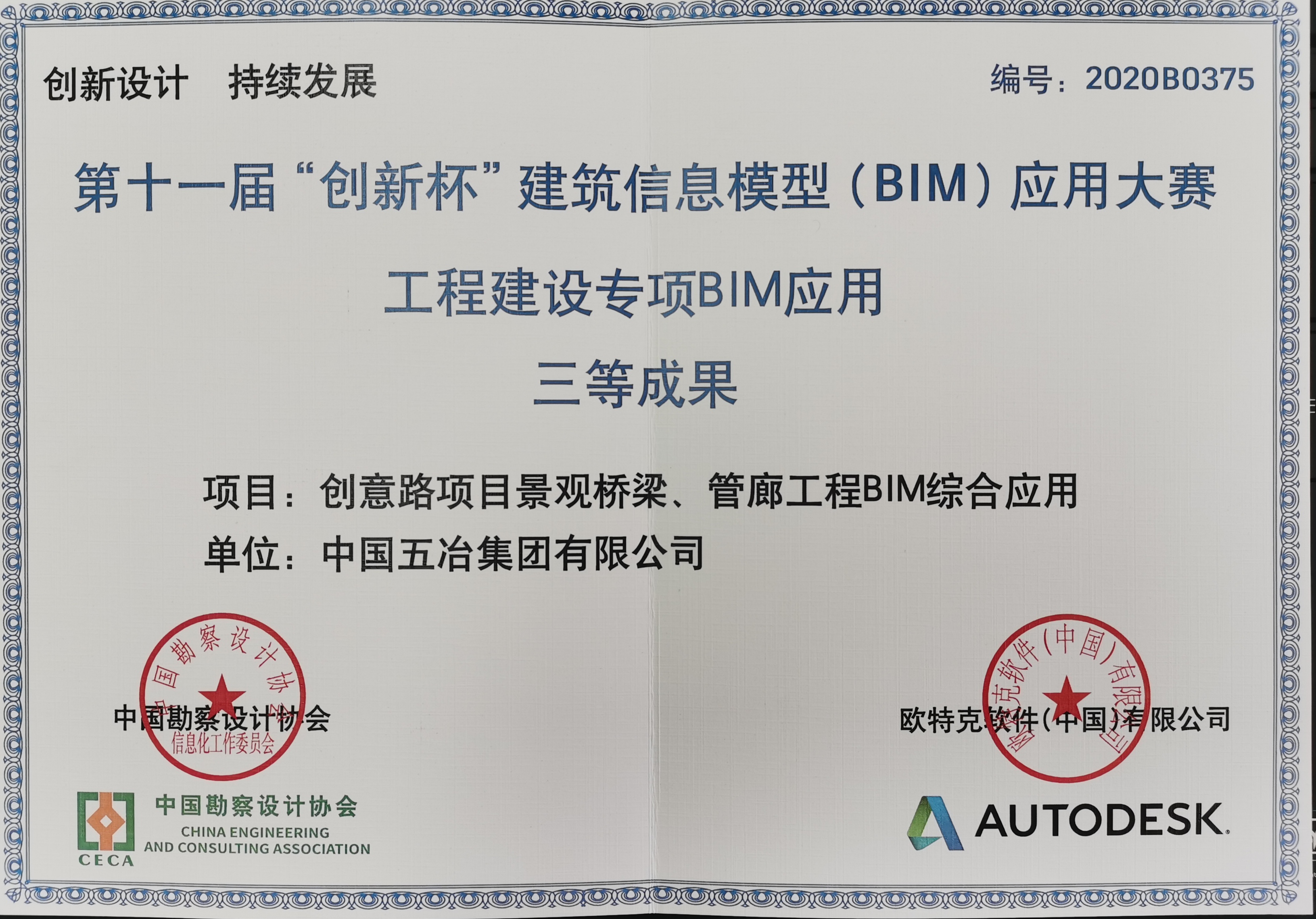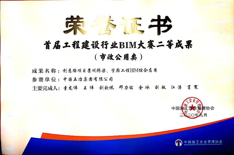 創(chuàng)意路項目景觀橋梁、管廊工程BIM綜合應(yīng)用——第二屆冶金建設(shè)行業(yè)BIM大賽二等獎