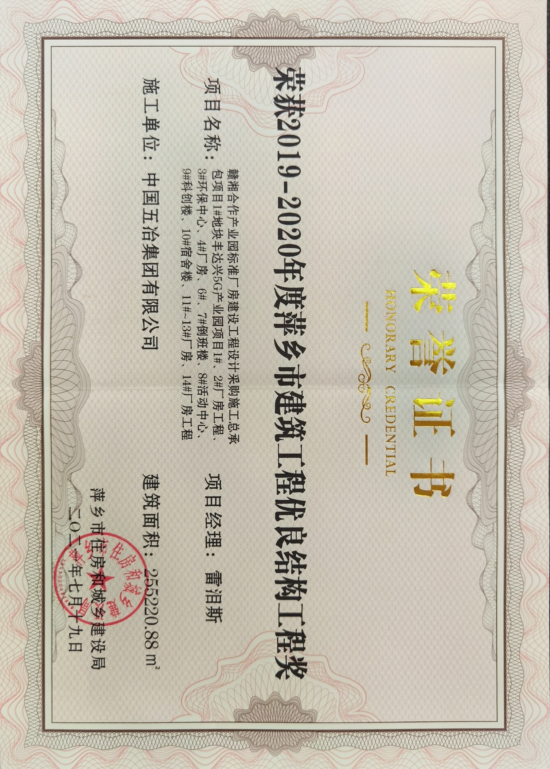 上栗PPP項(xiàng)目赤山工業(yè)園標(biāo)準(zhǔn)化廠房工程1-9#棟、福田安置小區(qū)工程1-13#樓、贛湘產(chǎn)業(yè)園項(xiàng)目1#地塊榮獲2019-2020年度萍鄉(xiāng)市建筑工程優(yōu)良結(jié)構(gòu)工程獎(jiǎng)