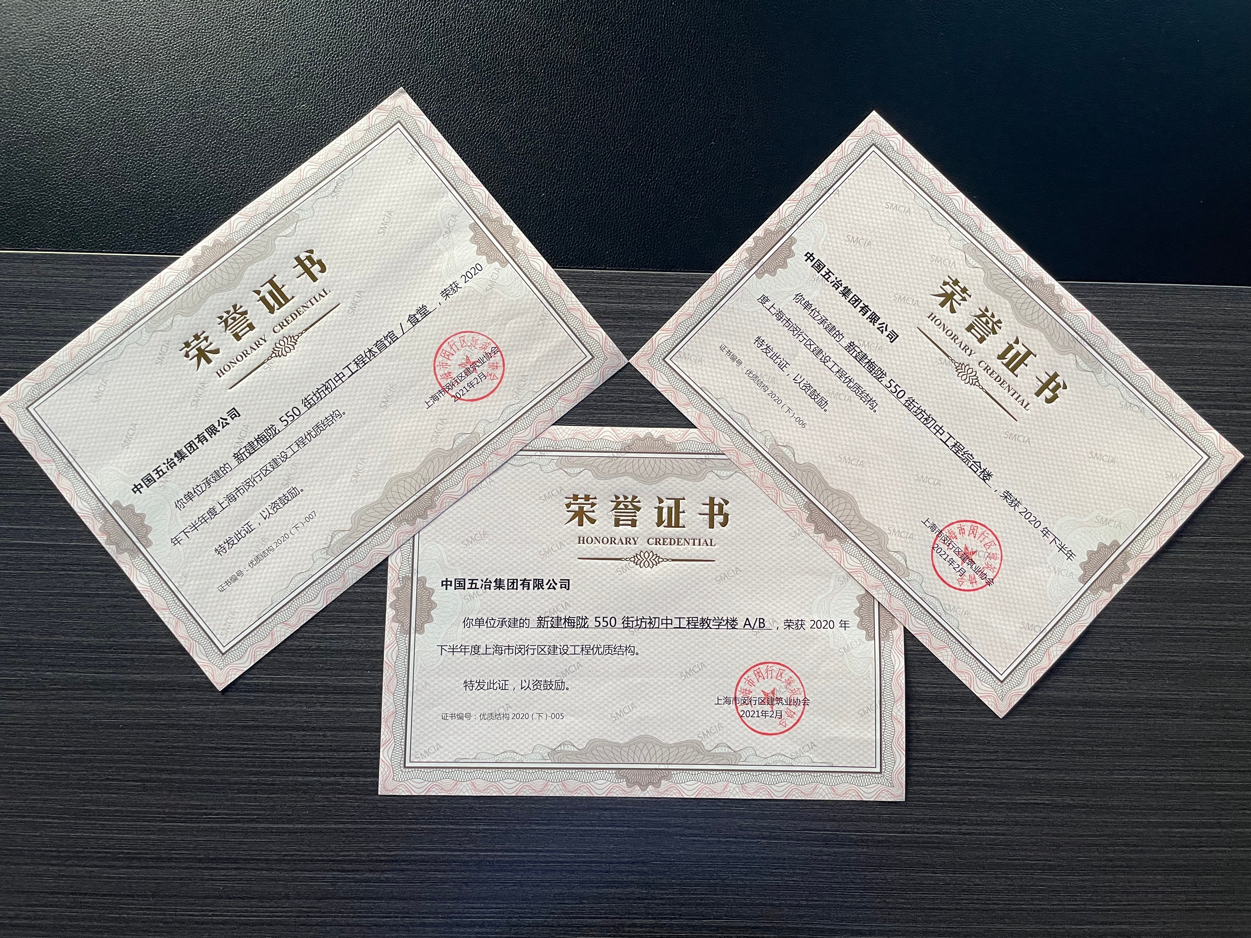 新建梅隴550街坊初中工程教學(xué)樓A/B、新建梅隴550街坊初中工程體育館/食堂、新建梅隴550街坊初中工程綜合樓榮獲2020年下半年度上海市閔行區(qū)建設(shè)工程優(yōu)質(zhì)結(jié)構(gòu)
