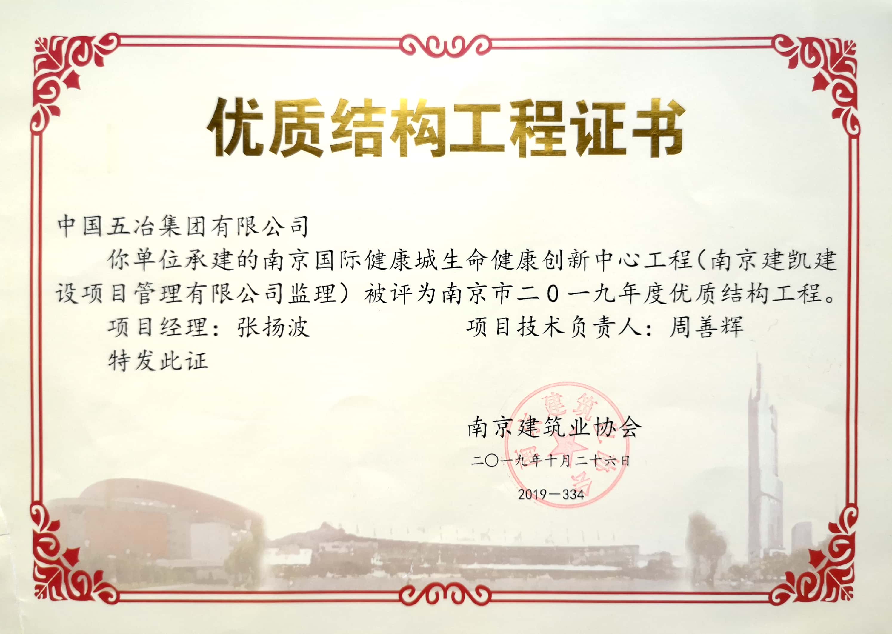 南京國(guó)際健康城生命健康創(chuàng)新中心工程——南京市二〇一九年度優(yōu)質(zhì)結(jié)構(gòu)工程