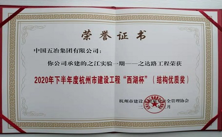 之江實驗一期-之達路工程—2020年下半年度杭州市建設工程”西湖杯“(結(jié)構(gòu)優(yōu)質(zhì)獎)