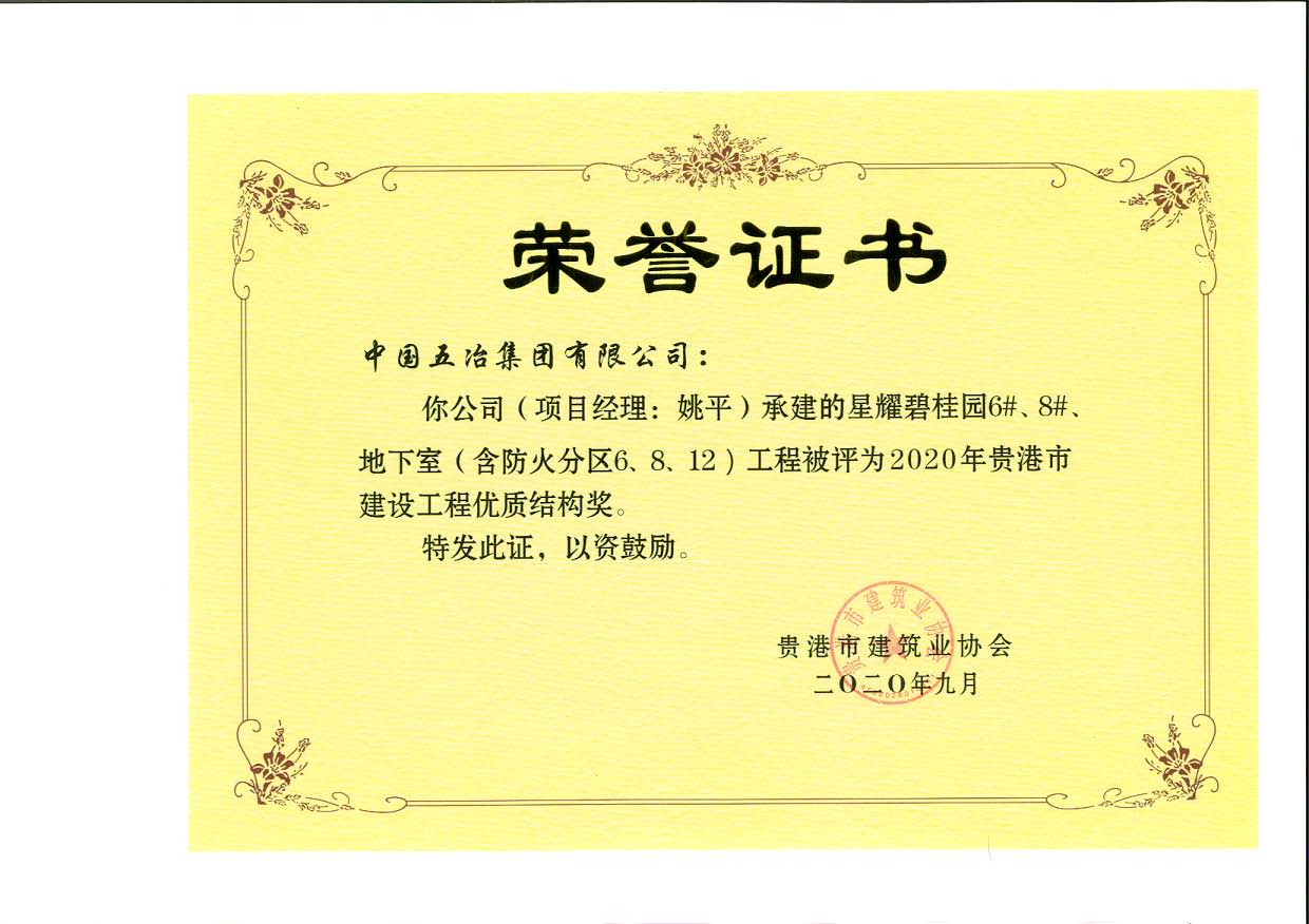 星耀碧桂園6#、8#、地下室工程—2020年貴港市建設工程優(yōu)質(zhì)結(jié)構(gòu)獎