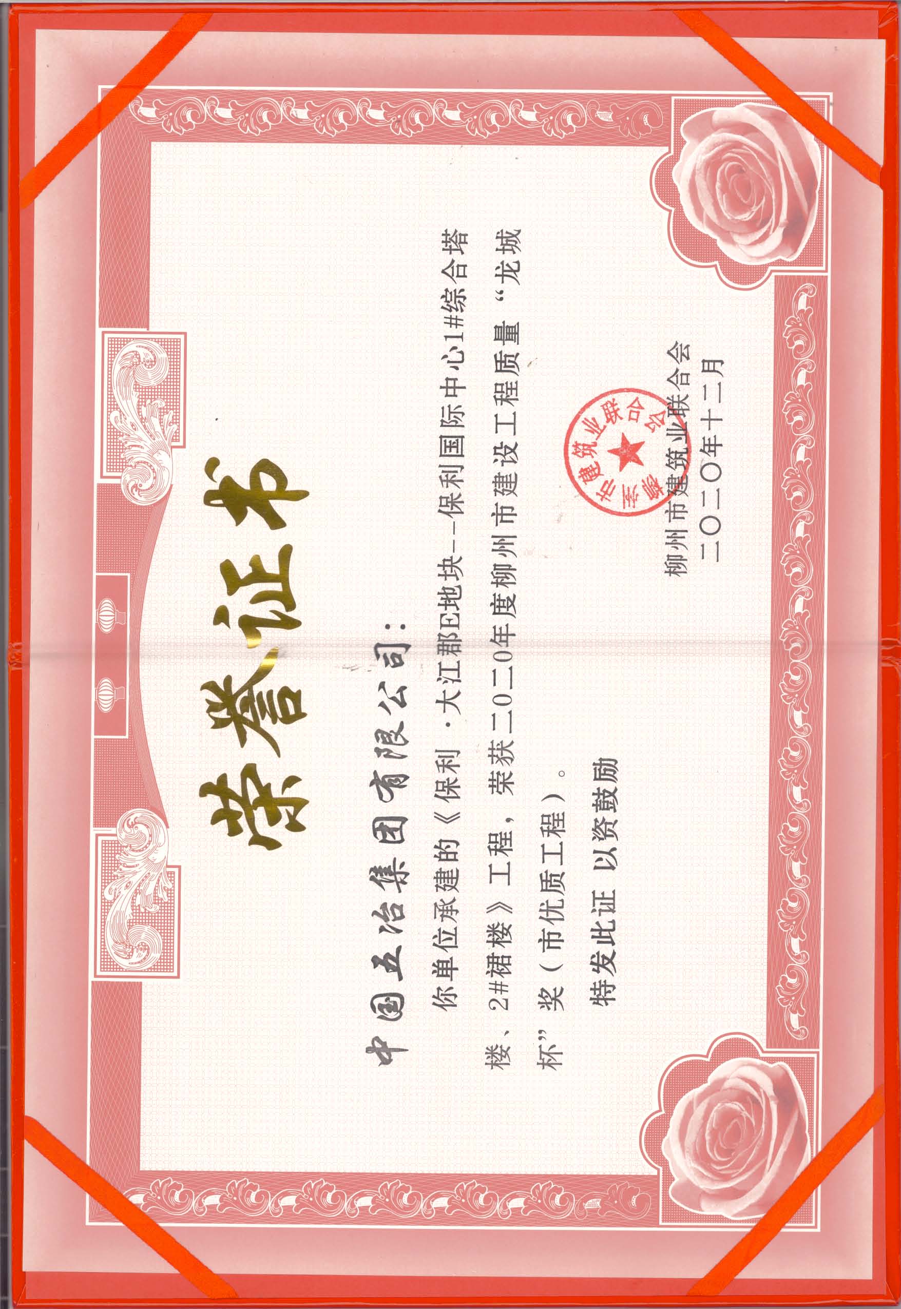 保利.大江郡E地塊-保利國際中心1#綜合塔樓、2#裙樓工程—2020年柳州市建設工程質(zhì)量龍城杯獎