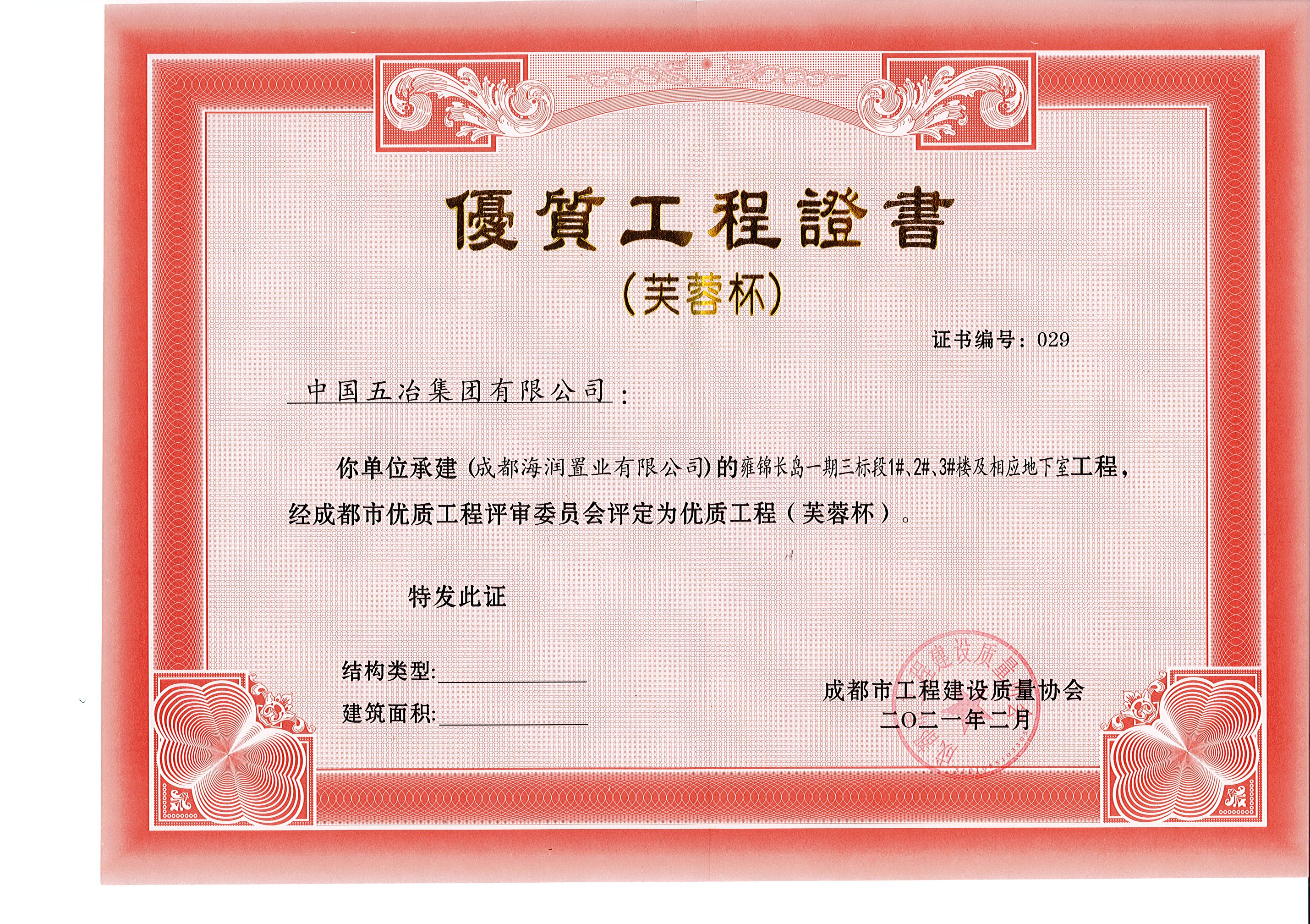 雍錦長島一期三標段1#、2#、3#樓及相應地下室工程—2020年成都市芙蓉杯