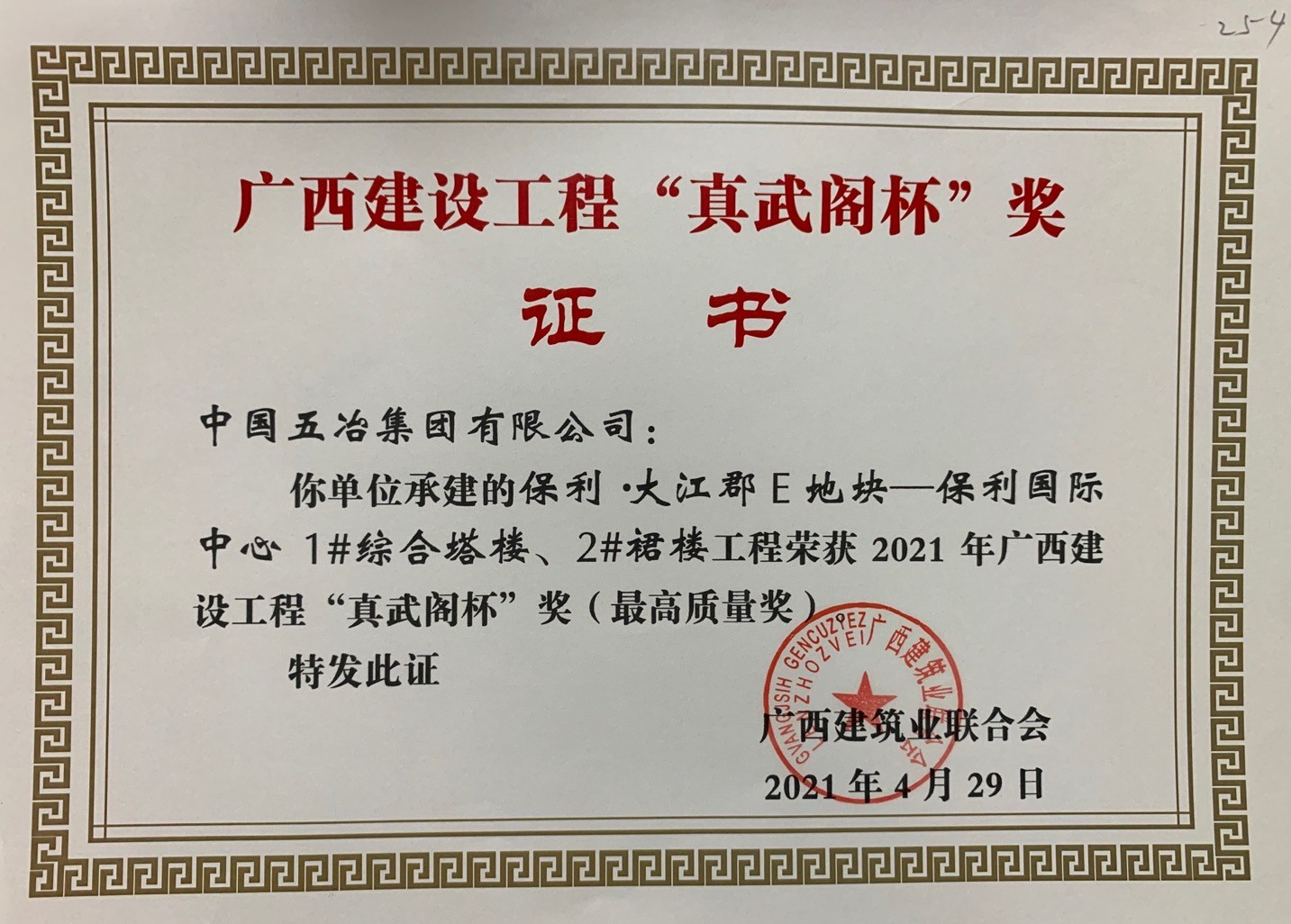 保利.大江郡E地塊-保利國(guó)際中心1#綜合塔樓、2#裙樓工程—2021年廣西建設(shè)真武閣杯獎(jiǎng)