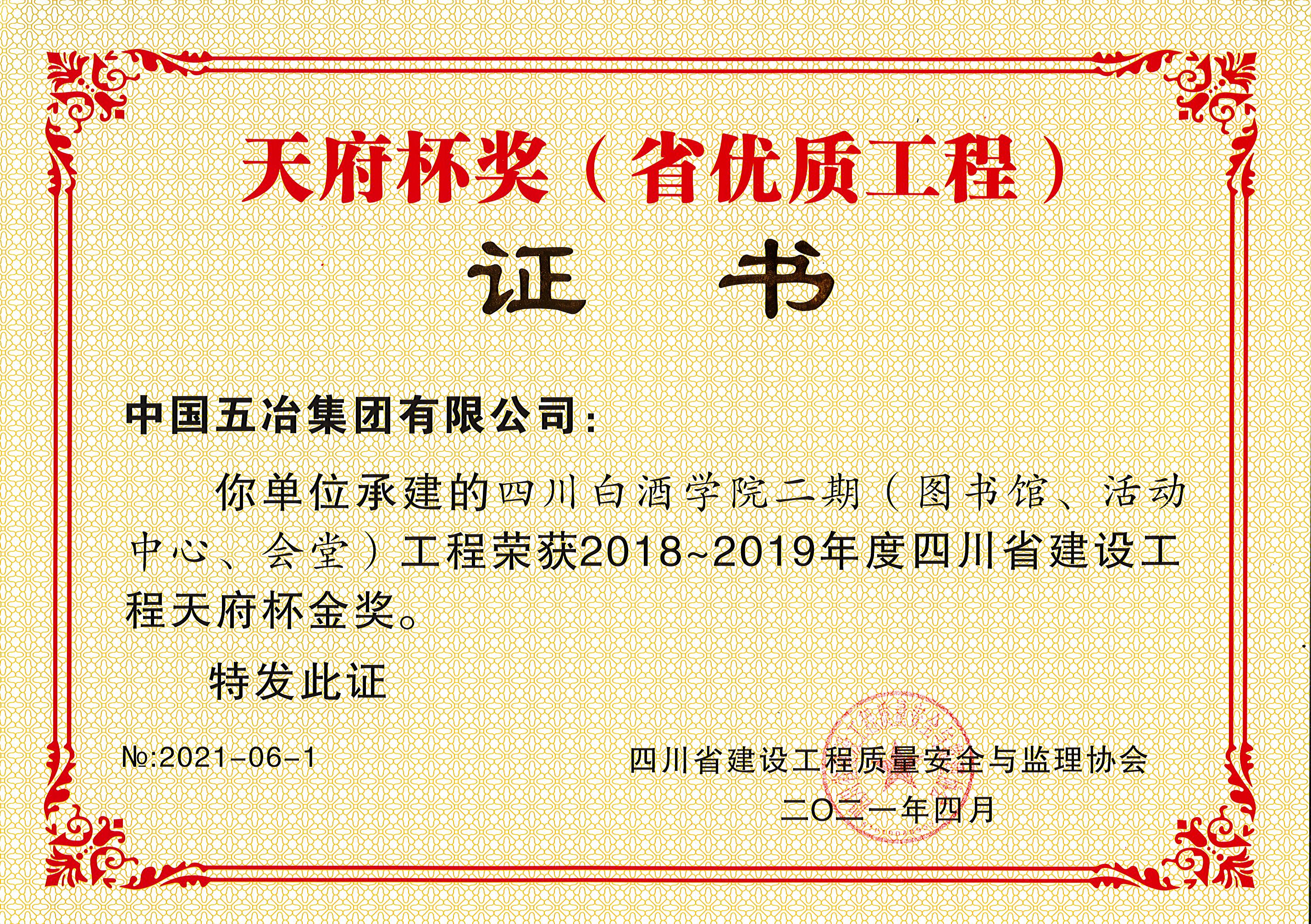 四川白酒學(xué)院二期(圖書館、活動(dòng)中心、會(huì)堂)工程—2018-2019年度四川省建設(shè)工程天府杯金獎(jiǎng)