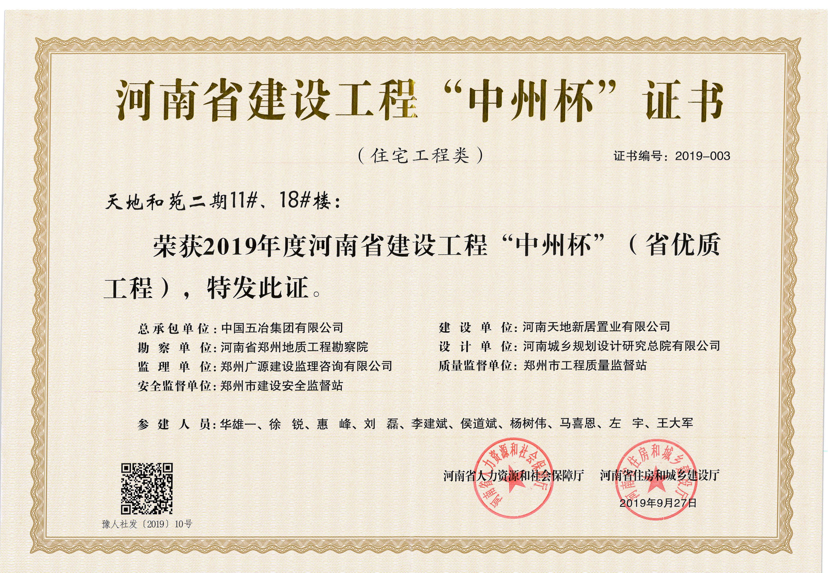 天地和苑二期11#、18#樓-2019年度河南省中州杯