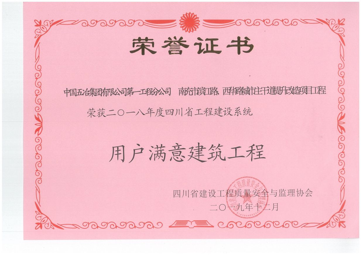 14-南充市濱江路、西華路城市主干道提升改造項目-2018年度四川省用戶滿意建筑工程證書