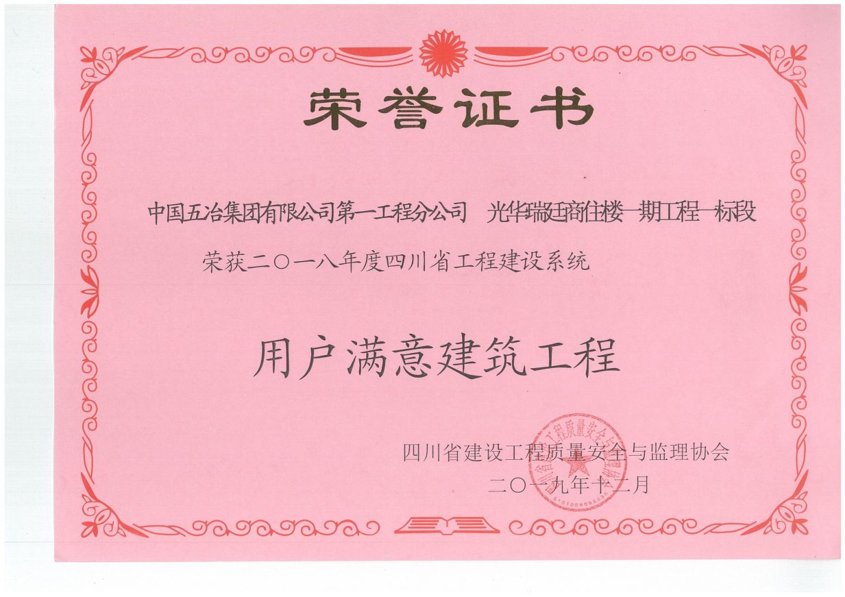 光華瑞廷商住樓一期工程一標(biāo)段項目--2018年度四川省用戶滿意建筑工程證書