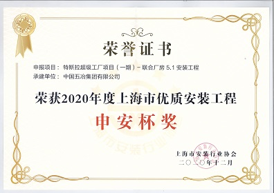 特斯拉超級工廠項目(一期)聯(lián)合廠房5.1安裝工程-2020年度上海市優(yōu)質(zhì)安裝工程申安杯獎
