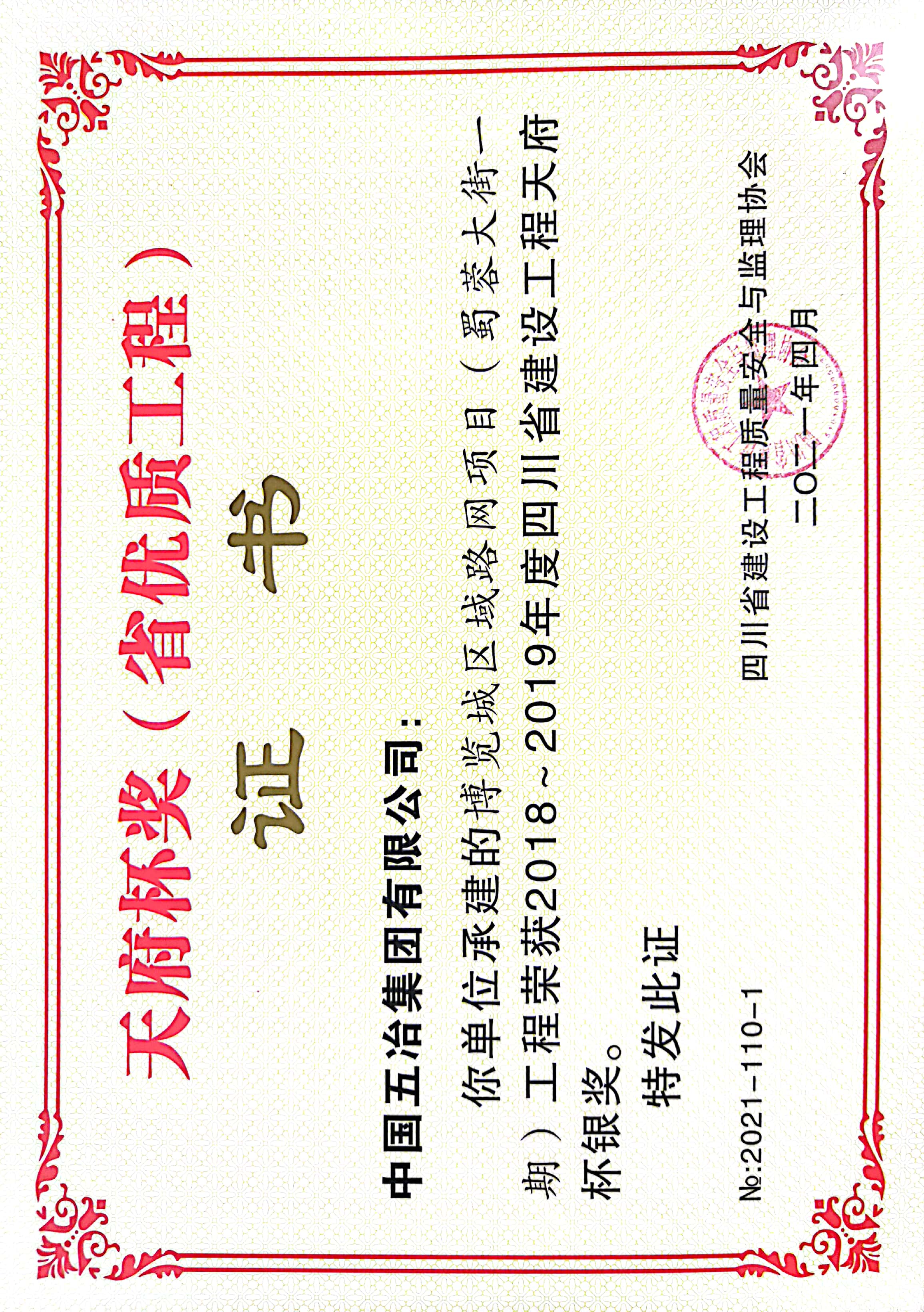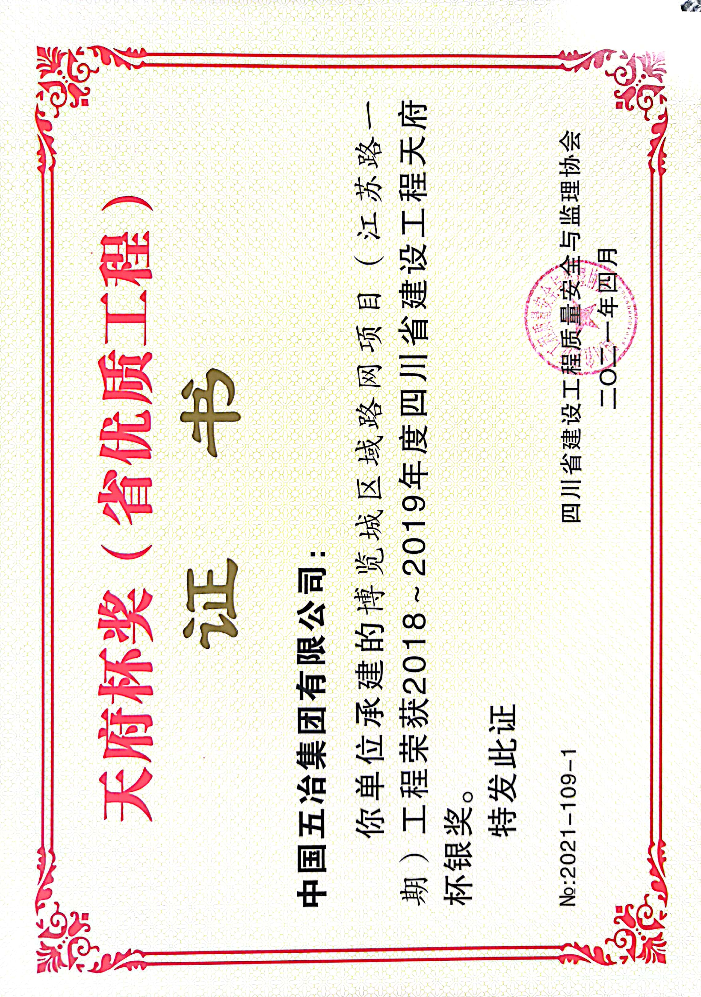 博覽城區(qū)域路網(wǎng)項目(蜀蓉大街一期)-2018~2019年度四川省建設(shè)工程天府杯銀獎