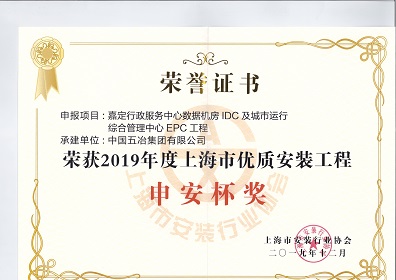 嘉定行政服務(wù)中心數(shù)據(jù)機房IDC及城市運行綜合管理中心EPC工程-2019年度上海市優(yōu)質(zhì)安裝工程申安杯獎