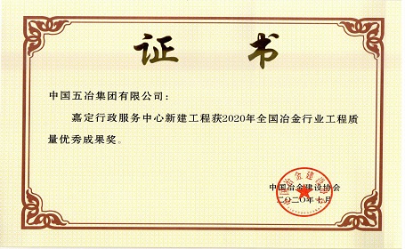 嘉定服務(wù)中心項(xiàng)目——2020年全國冶金行業(yè)工程質(zhì)量優(yōu)秀成果獎(jiǎng)