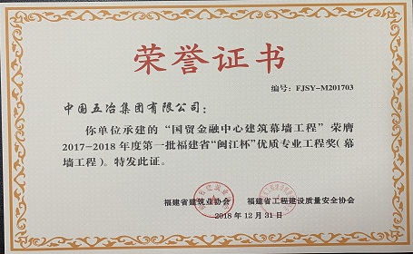 國貿(mào)金融中心建筑幕墻工程——2017—2018年度第一批福建省“閩江杯”優(yōu)質(zhì)專業(yè)工程獎(jiǎng)(幕墻工程)