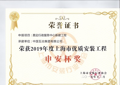 嘉定服務(wù)中心項(xiàng)目——2019年上海市優(yōu)質(zhì)安裝工程“申安杯”獎(jiǎng)