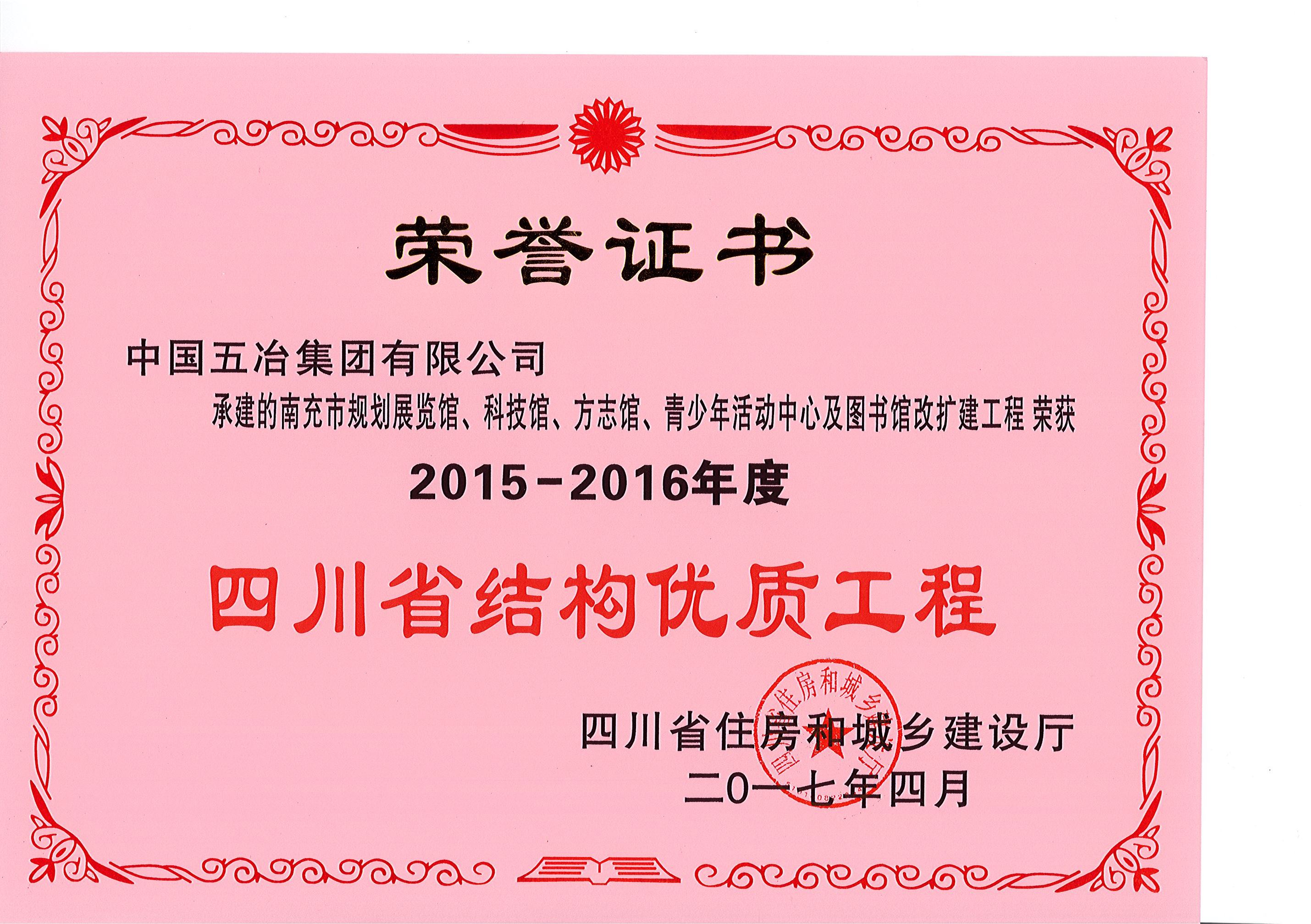 南充市規(guī)劃展覽館、科技館、方志館、青少年活動(dòng)中心及圖書館改擴(kuò)建工程—2015-2016年度四川省結(jié)構(gòu)優(yōu)質(zhì)工程