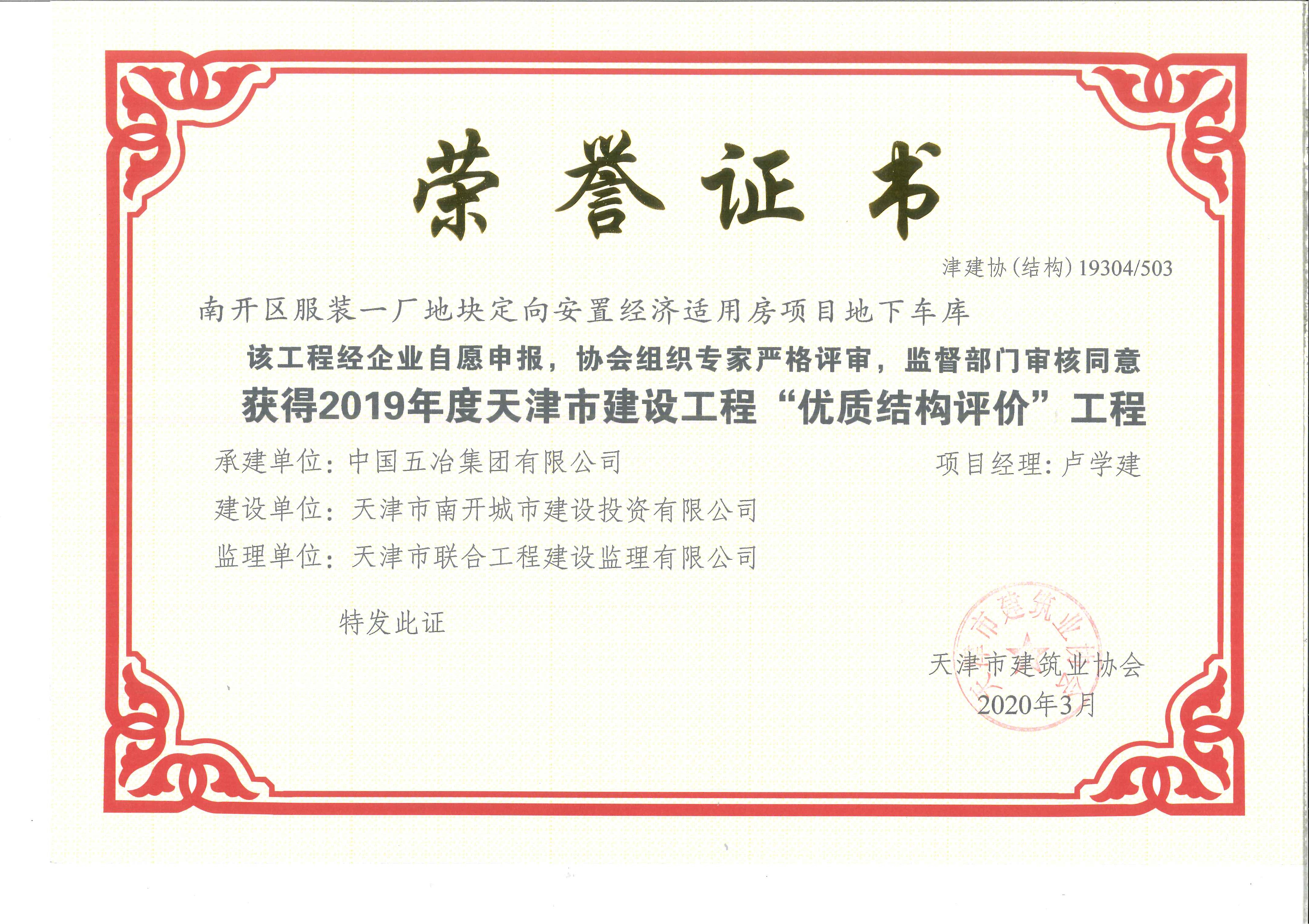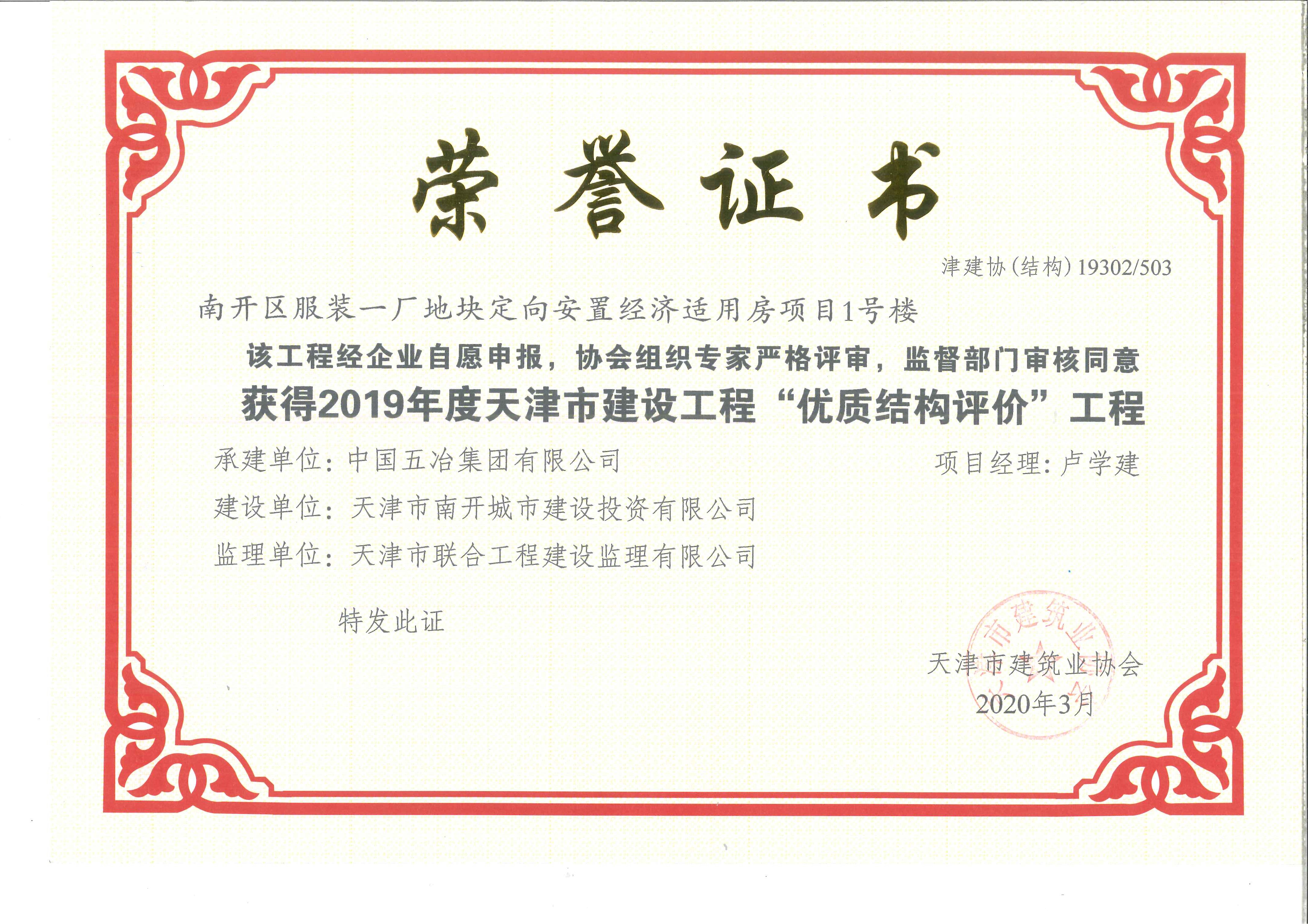南開區(qū)服裝一廠地塊定向安置經(jīng)濟(jì)適用房-7#樓--2019年度天津優(yōu)質(zhì)結(jié)構(gòu)評價