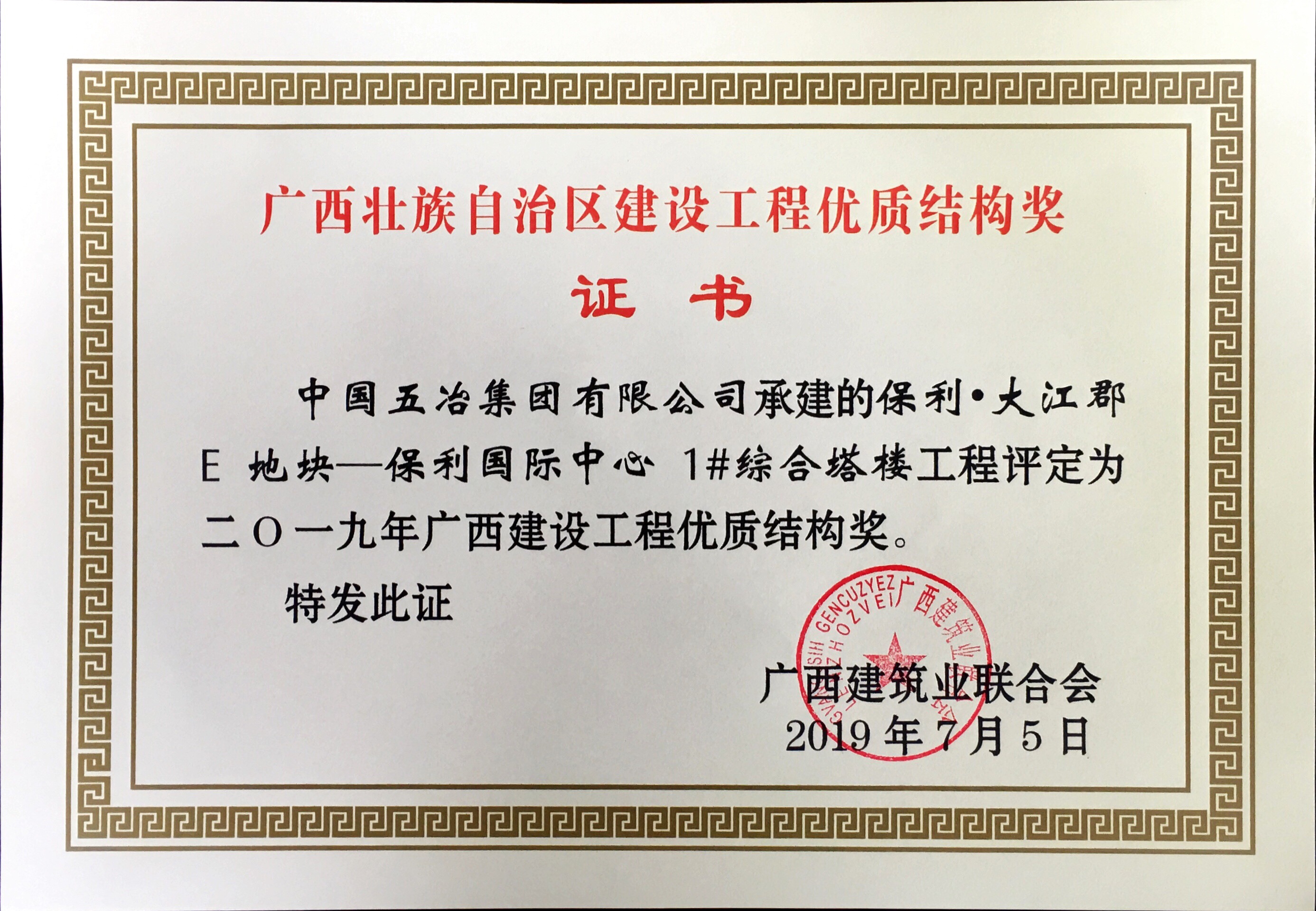保利.大江郡E地塊-保利國際中心1#綜合塔樓—2019年廣西建設(shè)工程優(yōu)質(zhì)結(jié)構(gòu)獎