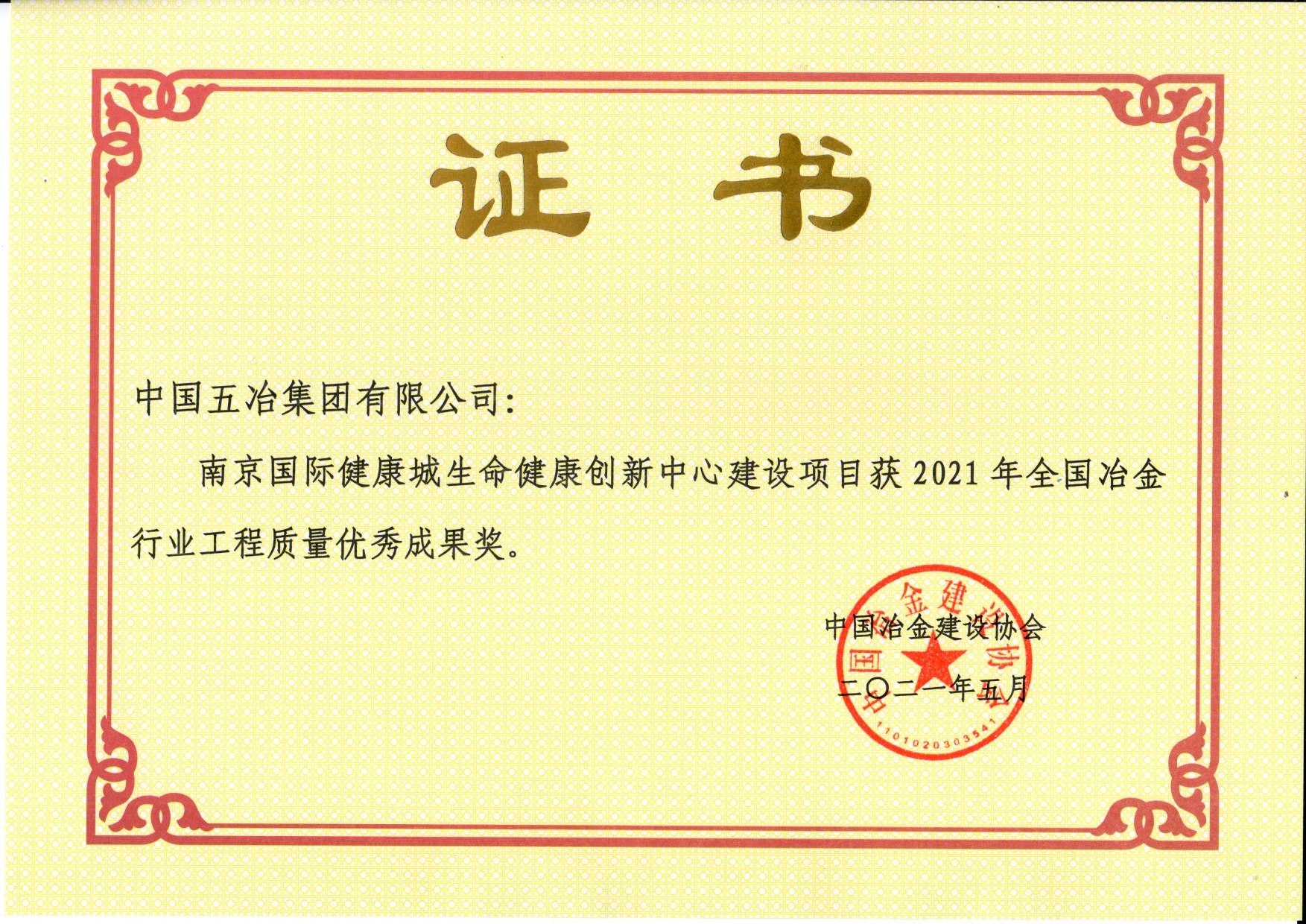 南京國際健康城生命健康創(chuàng)新中心建設(shè)項目——2021年全國冶金行業(yè)工程質(zhì)量優(yōu)秀成果獎