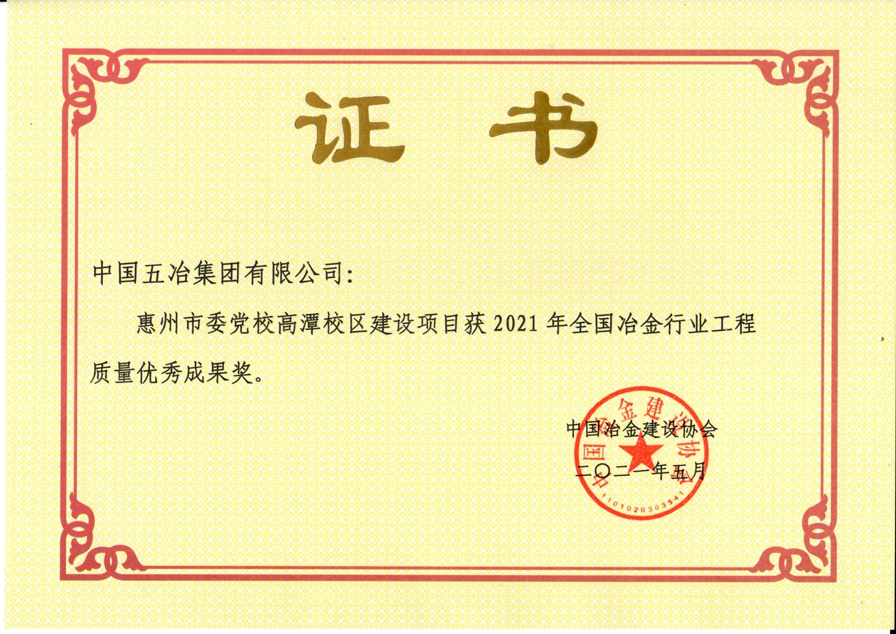 惠州市委黨校高潭校區(qū)建設(shè)項目——2021年全國冶金行業(yè)工程質(zhì)量優(yōu)秀成果獎