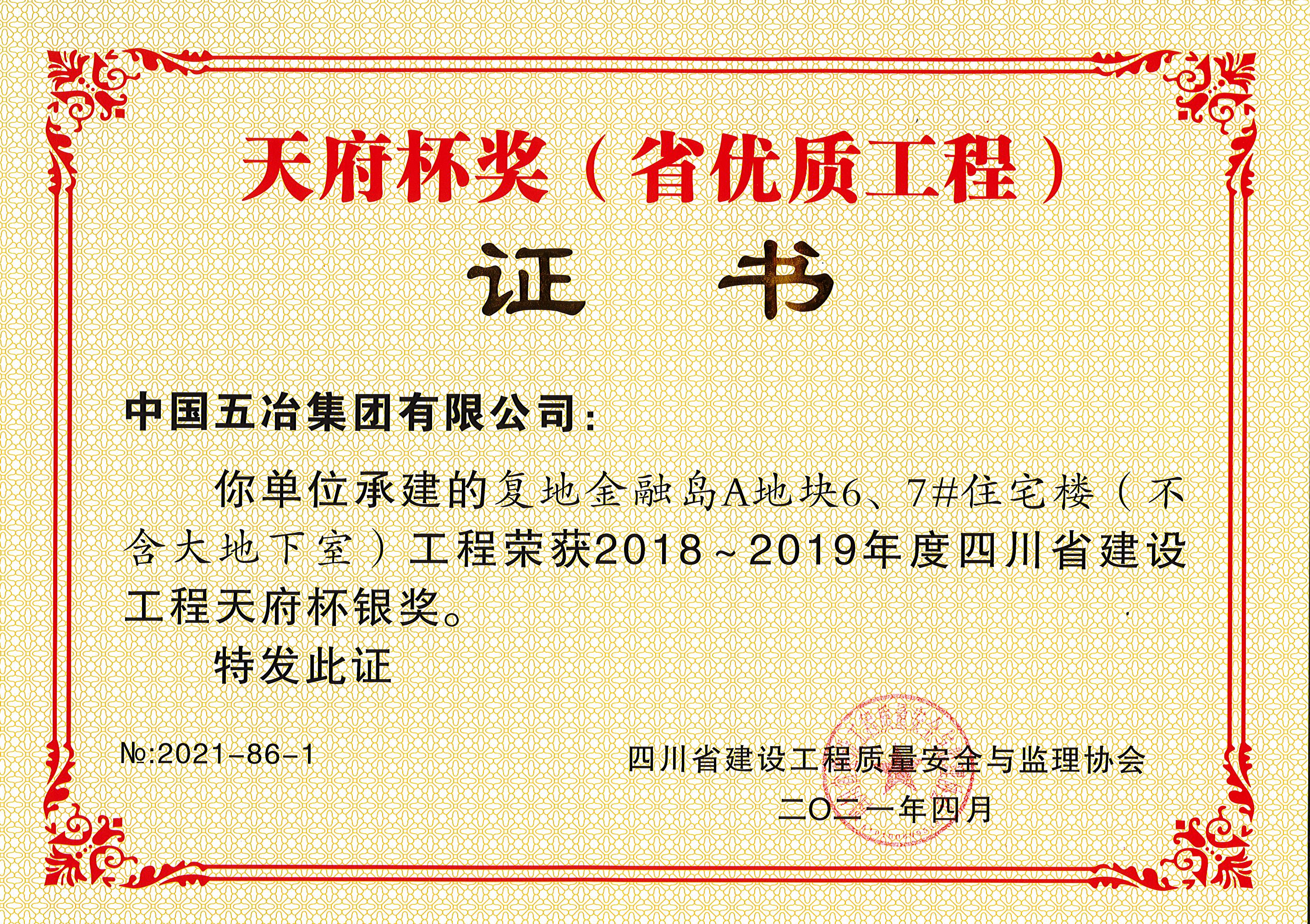 復地金融島A地塊6、7#住宅樓(不含大地下室)—2018-2019年度四川省建設(shè)工程天府杯銀獎