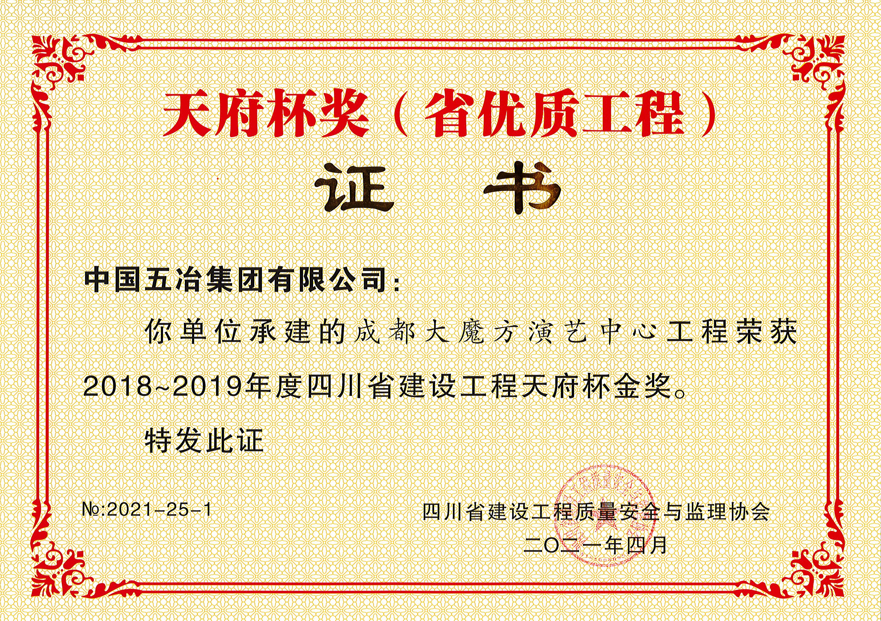 成都大魔方演藝中心—2018-2019年度四川省建設(shè)工程天府杯金獎