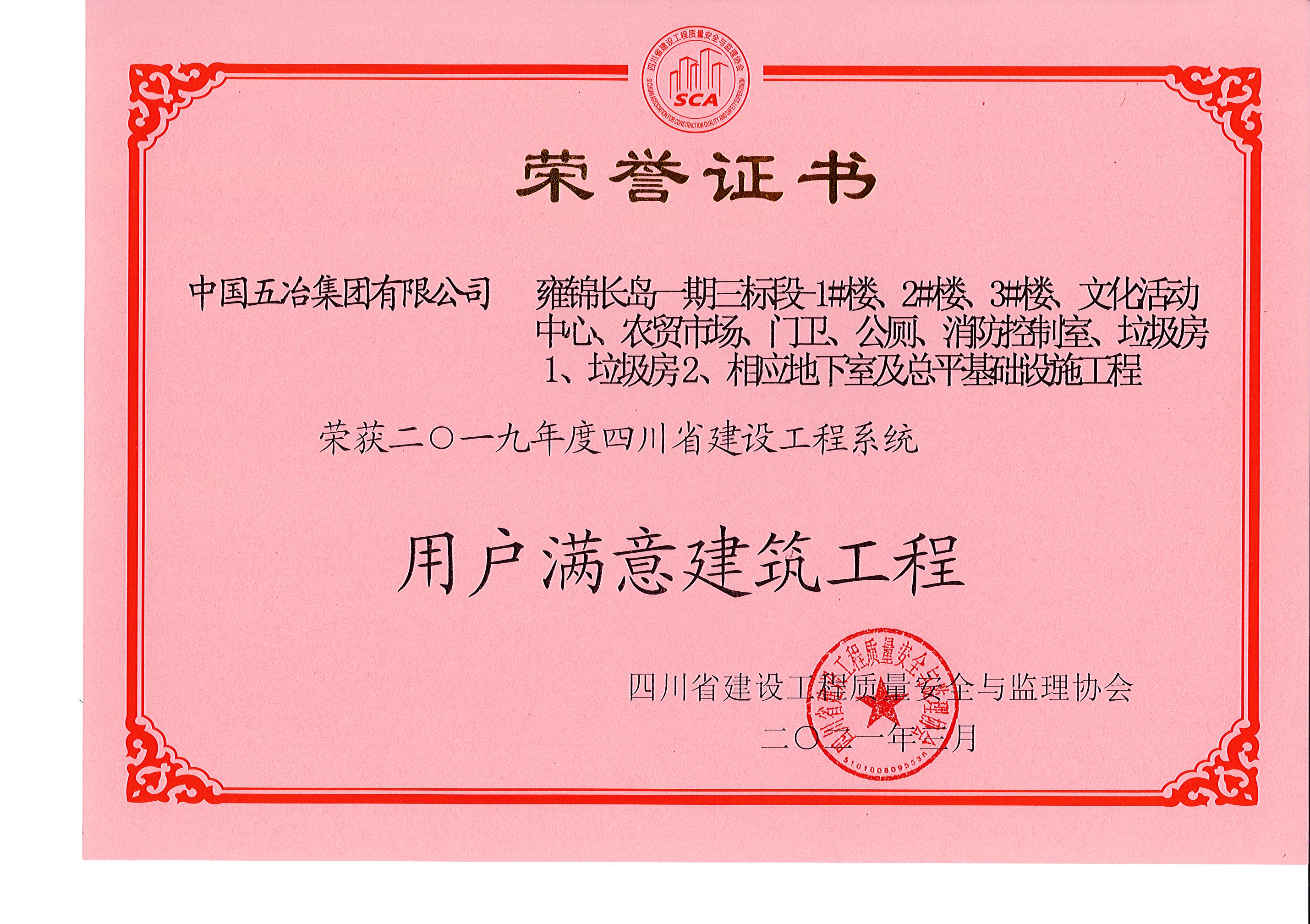 雍錦長島一期三標段1#、2#、3#樓及相應(yīng)地下室—2019年四川省建設(shè)工程系統(tǒng)用戶滿意工程