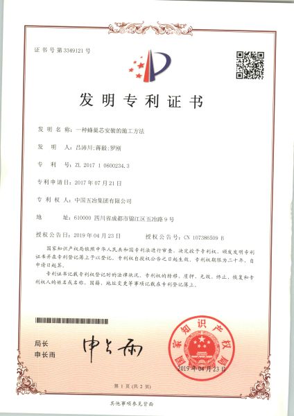 一種蜂巢芯安裝的施工方法 ZL201710600234.3