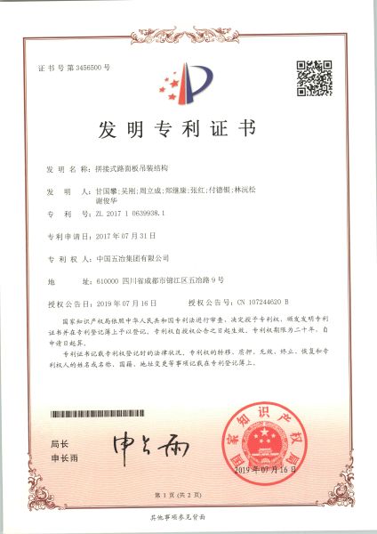 拼接式路面板吊裝結(jié)構(gòu) ZL2017106399381