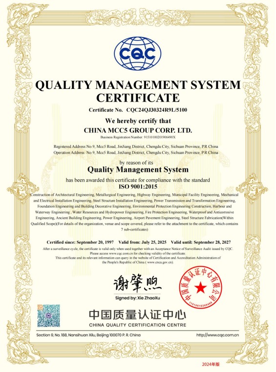 中國五冶集團有限公司(以下簡稱中國五冶集團),1997年通過ISO9000質(zhì)量體系認證。2004年,中國五冶集團按照ISO9001、ISO14001、OHSAS18001國際標準要求,建立質(zhì)量環(huán)境職業(yè)健康安全整合型管理體系并通過三標一體認證。2011年,中國五冶集團按照GB/T50430-2007《工程建設(shè)施工企業(yè)質(zhì)量管理規(guī)范》要求,建立并通過質(zhì)量環(huán)境職業(yè)健康質(zhì)量管理規(guī)范的三標一規(guī)范體系認證,至今保持三標一規(guī)范管理體系連續(xù)、平穩(wěn)和協(xié)調(diào)運行。
