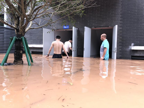 8月24日凌晨1點,樂山再次突發(fā)強降雨,新廣場公廁由于地勢較低,進水嚴重?!拔覀兞⒓窗才泡^近的新廣場停車場項目部趕去支援該公廁,連夜配送了20個防洪沙袋,并帶領工作人員在新廣場公廁入口構(gòu)筑防洪堤,確保把強降雨給項目帶來的損失降到最低。”項目負責人說。
