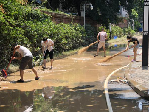 險情發(fā)生后,物業(yè)公司黨總支書記、董事長、經(jīng)理楊建斌第一時間趕到現(xiàn)場,檢查受災情況,與項目負責人一起統(tǒng)籌調(diào)度應急組織部署搶險工作,并叮囑大家在搶險過程中一定做好個人防護工作,把員工人身安全放在首位。