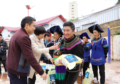 10月18日,在甘子村慰問現(xiàn)場,吳睿代表一分公司黨委、工會向秦永紅及甘子村同胞致以誠摯的慰問和美好的新春祝福,并將慰問信交予村委會書記手中,向貧困戶代表分發(fā)了大米、食用油等慰問品。吳睿在交流中表示,2020年是脫貧攻堅決戰(zhàn)決勝之年,彝族同胞們在脫貧之路上展現(xiàn)出了火熱的激情、堅韌頑強的意志,以及為美好生活而奮斗的拼搏精神。作為央企,中國五冶將繼續(xù)踐行社會責任,扛起央企擔當,與貧困村攜手奮進,迎接脫貧摘帽的那一天!愿甘子村所有百姓早日實現(xiàn)“兩不愁三保障”,愿彝族燦爛的民族文化綻放新時代光彩!
