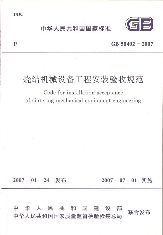 燒結(jié)機(jī)械設(shè)備工程安裝驗(yàn)收規(guī)范 GB50402-2007