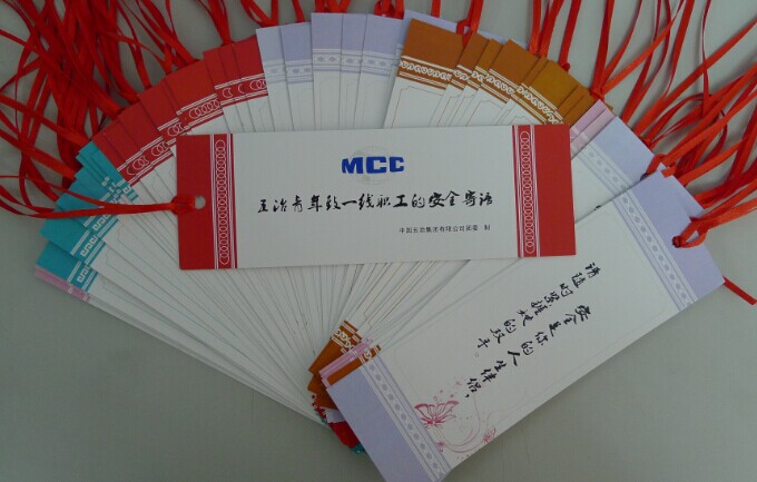 在安全生產(chǎn)月暨安康杯、青安杯競賽活動期間,共青團(tuán)配合集團(tuán)公司安全月活動開展了安全警句征集活動,各級團(tuán)組織積極動員,兩個(gè)月來,共征集到全公司130余名青年員工的原創(chuàng)作品153條。經(jīng)統(tǒng)一設(shè)計(jì),制作成安全寄語書簽卡隨同公司的高溫慰問品一起送到一線員工手中。