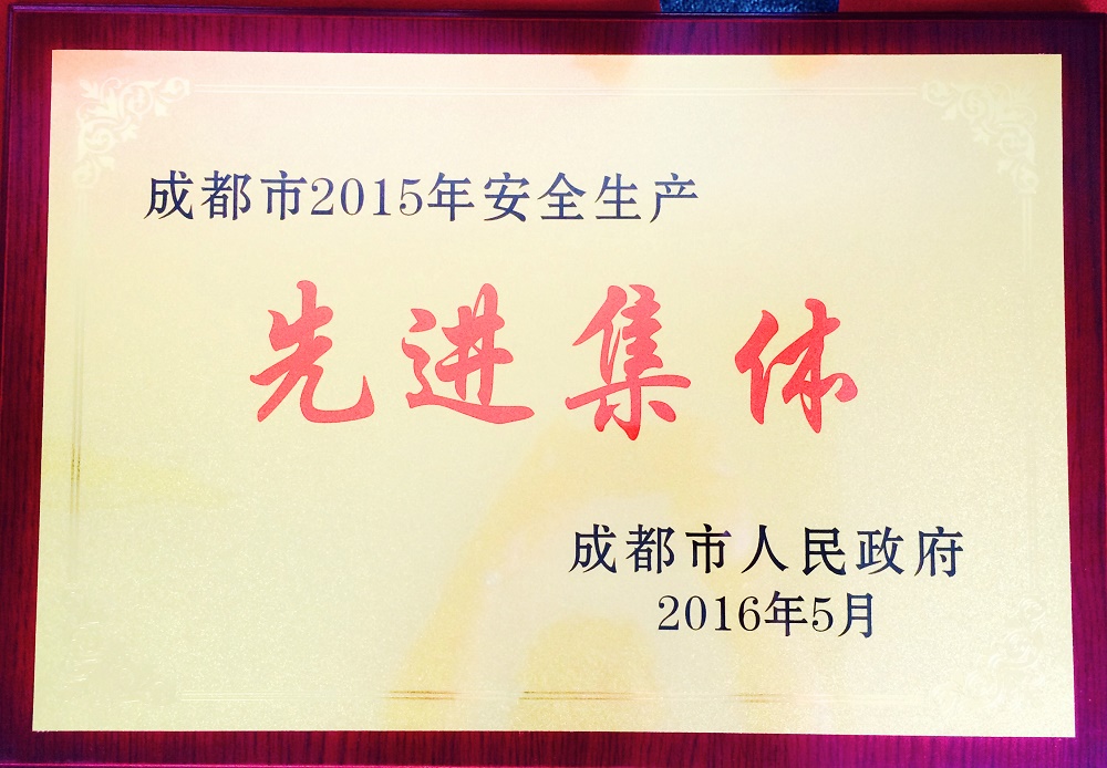 2016年5月,中國五冶集團榮獲成都市2015年安全生產(chǎn)先進集體稱號。