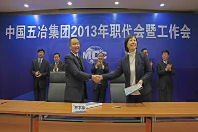 蒙昌嘉與周悅靜簽訂《中國(guó)五冶集團(tuán)工資集體協(xié)議》
