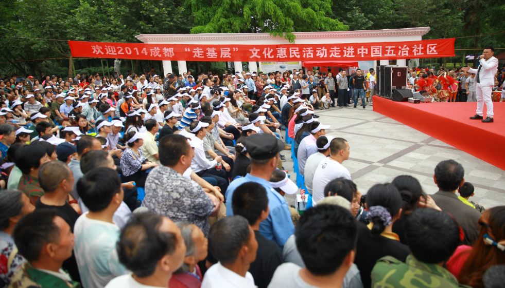 5月25日下午3點(diǎn),成都市委宣傳部主辦的2014“走基層”文化惠民活動走進(jìn)五冶社區(qū),在新華公園廣場舉行慰問演出。東方茉莉女子國樂團(tuán)等知名演藝團(tuán)體和馬渲子、郭仕軍、何剛等一批國家一級演員、四川青年喜劇演員、男高音歌唱家等本土文化名人到場獻(xiàn)藝。我公司教培中心選派的舞蹈《歡歌起舞》代表中國五冶集團(tuán)青年志愿者同臺演出。