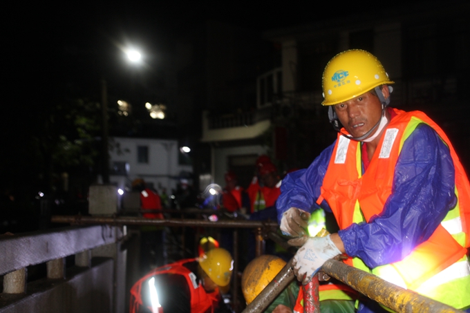 因常綠溪上老橋護欄已有多段被大水沖毀,為保證河堤保護區(qū)不受洪水中夾雜的石塊及木頭沖擊,五冶搶險隊伍用鋼管腳手架搭設(shè)護欄并用沙袋封堵,經(jīng)過五小時的艱苦奮戰(zhàn),構(gòu)筑了長達(dá)兩公里的人民生命財產(chǎn)安全防線。搶險結(jié)束后,面對當(dāng)?shù)仉娨暸_的鏡頭,周善輝坦言:“中國五冶集團是國家的五冶,是人民的五冶,在國家和人民需要時,五冶人必將身先士卒、義不容辭、沖鋒在前。今天搶險只是開始,五冶人還將組建百人預(yù)備隊,隨時等候政府及人民的調(diào)遣,為保障人民群眾生命財產(chǎn)安全貢獻(xiàn)央企力量?!?/p>