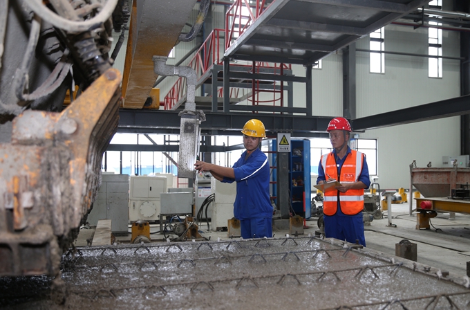 16名來自裝配式生產(chǎn)線的參賽男女員工分成四個(gè)小隊(duì),在由技術(shù)專家擔(dān)任“裁判”的賽場上開展兩個(gè)項(xiàng)目的技能比拼。一聲令下,參賽隊(duì)伍首先來到裝配式構(gòu)件模臺(tái)上“拼手速”,分頭進(jìn)行模臺(tái)清理、劃線、鋼架測量拼裝和預(yù)埋組件組合固定等系列作業(yè);隨后,隊(duì)伍們陸續(xù)來到數(shù)控機(jī)床面板前“拼手藝”,按照?qǐng)D紙上的設(shè)計(jì)參數(shù),進(jìn)行生產(chǎn)線上的混凝土裝配板下料和振搗作業(yè),比拼哪支隊(duì)伍能又快又好地完成“較量”。
