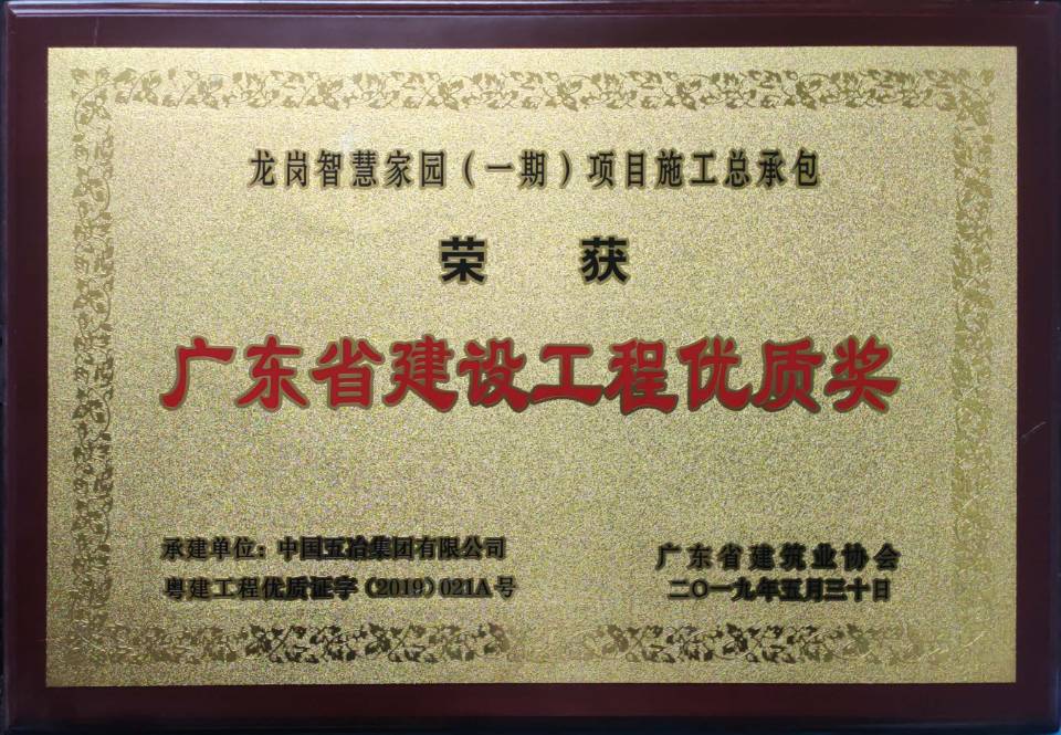 龍崗智慧家園(一期)項(xiàng)目施工總承包榮獲2019年度廣東省建設(shè)工程優(yōu)質(zhì)獎(jiǎng)(房屋建筑及專業(yè)工程)