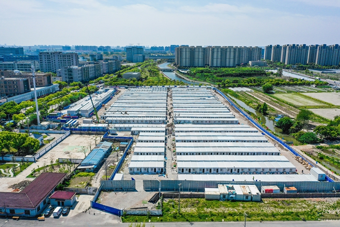 該隔離點(diǎn)位于國家會展中心P24停車場內(nèi),占地面積36000平,分為觀察區(qū)、安全區(qū)、限制區(qū),計(jì)劃新建1000間集裝箱板房,建成后最多可容納近2000人,主要用于及時(shí)轉(zhuǎn)運(yùn)隔離密接人員,對切斷社區(qū)傳播鏈具有重要意義。