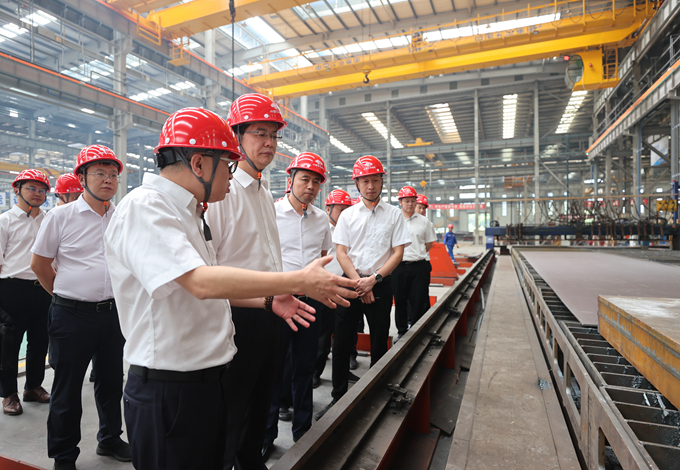 朱永繁董事長一行走進五冶建筑科技產(chǎn)業(yè)園現(xiàn)場,實地察看鋼結(jié)構(gòu)智能化生產(chǎn)線建設(shè)推進情況,詳細了解相關(guān)生產(chǎn)工藝流程、質(zhì)量安全控制、成品特點及工廠運營狀況。在隨后召開的座談會上,鋼構(gòu)公司相關(guān)負責人匯報了建筑科技產(chǎn)業(yè)園、中冶交投善筑及五冶鋼構(gòu)有關(guān)生產(chǎn)經(jīng)營情況、問題困難以及需幫扶事項,參會領(lǐng)導針對存在問題、建議和意見進行了討論。