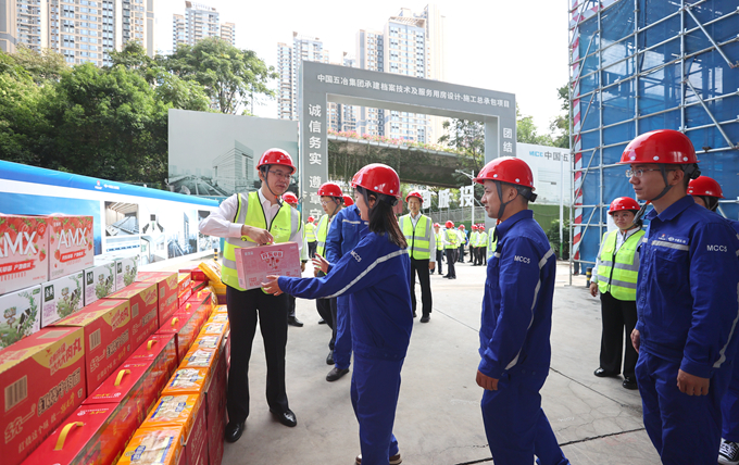 朱永繁董事長一行來到成都市城市建設(shè)和自然資源檔案館、白鷺灣科技生態(tài)園三期項(xiàng)目現(xiàn)場,仔細(xì)檢查安全環(huán)保工作落實(shí)和執(zhí)行是否到位,詳細(xì)了解項(xiàng)目策劃、工期、技術(shù)、質(zhì)量、經(jīng)營等管理情況,并向一線員工送上礦泉水、牛奶、飲料、水果、方便面、面包糕點(diǎn)等慰問品,并代表集團(tuán)公司黨委、董事會(huì)、經(jīng)營層向堅(jiān)守崗位的廣大員工、合作伙伴及工友致以節(jié)日問候。