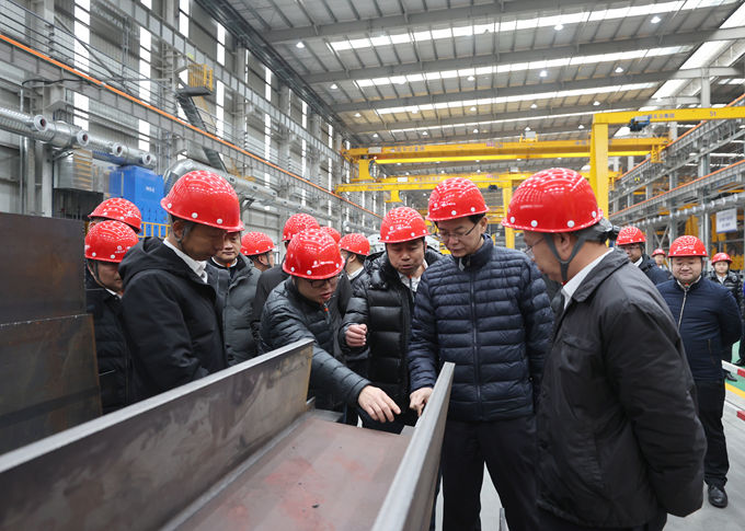 朱永繁董事長(zhǎng)一行首先來到龍泉驛城市更新和簡(jiǎn)陽(yáng)土地綜合治理兩個(gè)項(xiàng)目現(xiàn)場(chǎng),簡(jiǎn)要聽取項(xiàng)目負(fù)責(zé)人匯報(bào),了解工程概況、工期進(jìn)度、策劃編制及執(zhí)行、履約管理等方面情況;隨后,他來到中國(guó)五冶集團(tuán)建筑科技產(chǎn)業(yè)園,實(shí)地查看裝配式混凝土生產(chǎn)線、全自動(dòng)智能化鋼結(jié)構(gòu)生產(chǎn)線運(yùn)轉(zhuǎn)情況,不時(shí)與相關(guān)負(fù)責(zé)人交流,詢問工藝和質(zhì)量管控細(xì)節(jié)。朱永繁董事長(zhǎng)代表集團(tuán)公司向新春佳節(jié)期間奮戰(zhàn)在一線的廣大員工、合作伙伴及各位工友表示敬意和感謝,祝大家春節(jié)快樂,幸福安康,同時(shí)要求大家安排好節(jié)日?qǐng)?jiān)守期間的生活。