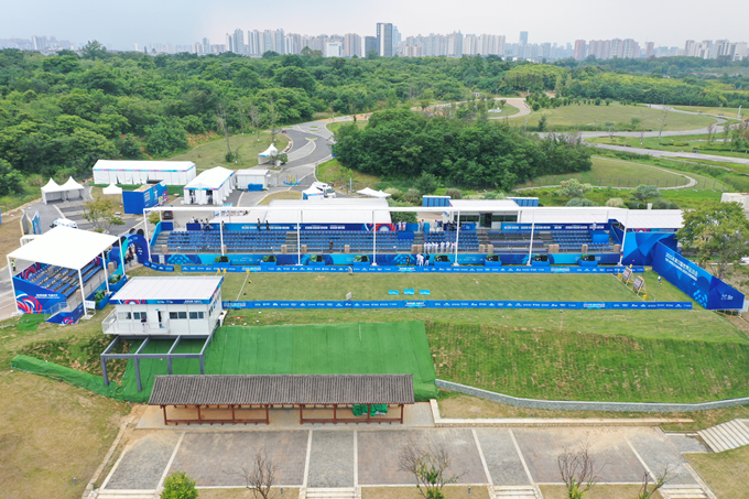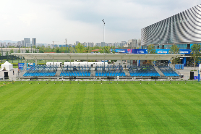 世運(yùn)會(huì)射箭、拔河等比賽觀眾席設(shè)置在成都東安湖體育公園中央廣場(chǎng)、青龍湖濕地公園,超1萬(wàn)名海內(nèi)外觀眾在這里吶喊歡呼。為支撐世運(yùn)會(huì)觀賽需求,五冶建設(shè)者掛圖作戰(zhàn),倒排工期,全力以赴,攻堅(jiān)克難,在7天之內(nèi)完成了964平方米棚蓋建設(shè),覆蓋1060個(gè)看臺(tái)席位,全部采用裝配式鋼結(jié)構(gòu)施工,最大限度降低對(duì)公園生態(tài)環(huán)境影響,賽后可快速拆除回收利用,做到安全環(huán)保。