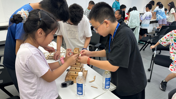 活動當(dāng)天,現(xiàn)場工作人員帶領(lǐng)孩子和工友們走進(jìn)中國五冶集團(tuán)科技中心大廈,沿著精心設(shè)計(jì)的路線,深度探索這座零碳建筑的“科技密碼”,大家觀看了中國五冶集團(tuán)自主研發(fā)的建筑智慧低碳運(yùn)維系統(tǒng),并參觀了多個頂級科學(xué)家領(lǐng)銜的創(chuàng)新工作室和建筑工業(yè)化與智能建造、城市更新、智慧機(jī)電、公園城市、綠色與智慧巖土等八大工程技術(shù)研究中心,全方位體驗(yàn)了零碳建筑的科技魅力。參觀結(jié)束后,“裝配式建筑科普講座”精彩開講,工作人員通過生動的圖文視頻,深入淺出地講解了裝配式建筑與傳統(tǒng)建筑的區(qū)別,帶領(lǐng)大家穿越不同歷史時期,感受裝配式建筑的發(fā)展脈絡(luò),了解裝配式建筑的諸多優(yōu)點(diǎn)和未來發(fā)展前景,讓孩子們對裝配式建筑有了全新的認(rèn)知。隨后,“趣味小試驗(yàn)”環(huán)節(jié)將活動推向高潮,孩子們每4人被分成1個小組,展開了一場緊張而歡樂的“建筑搭建大比拼”,大家齊心協(xié)力,將零散構(gòu)件組建成精巧的建筑模型,優(yōu)先完成搭建的小組收獲了精美獎品,現(xiàn)場歡聲笑語不斷?;顒咏Y(jié)束后,工作人員向全體兒童贈送了文具用品并給予祝福,鼓勵他們好好學(xué)習(xí)、健康成長。