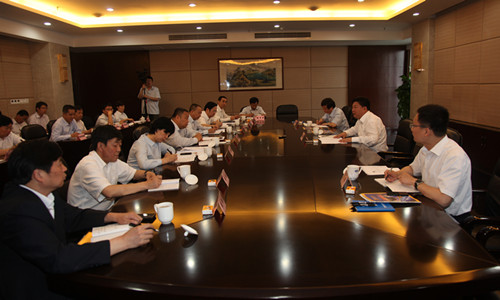 8點30分,國文清一行來到中國五冶集團大魔方項目銷售中心,現(xiàn)場聽取了該項目的實施情況。隨后,國文清又趕到剛剛整合成為中國五冶集團全資子公司的中冶成勘,與該公司領導班子成員進行了會談。